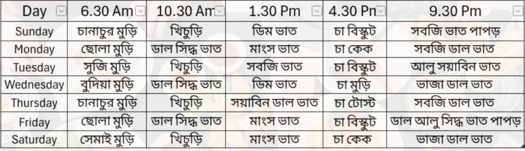 School Dayli Meal Shedul